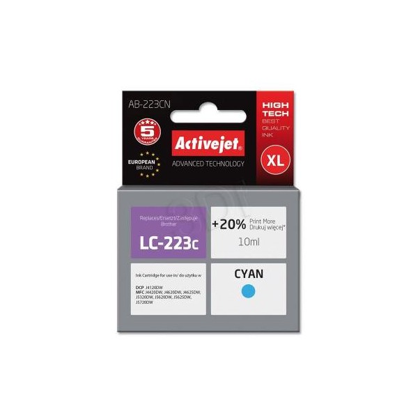 Tusz zamiennik Activejet AB-223CN (Brother LC223C) supreme XL 10ml cyan