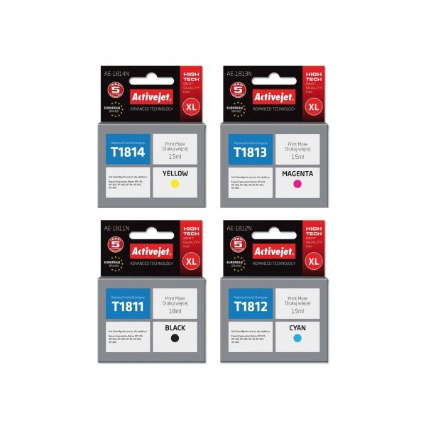 Zestaw tusz producenta Activejet o numerze t1811-t1814.